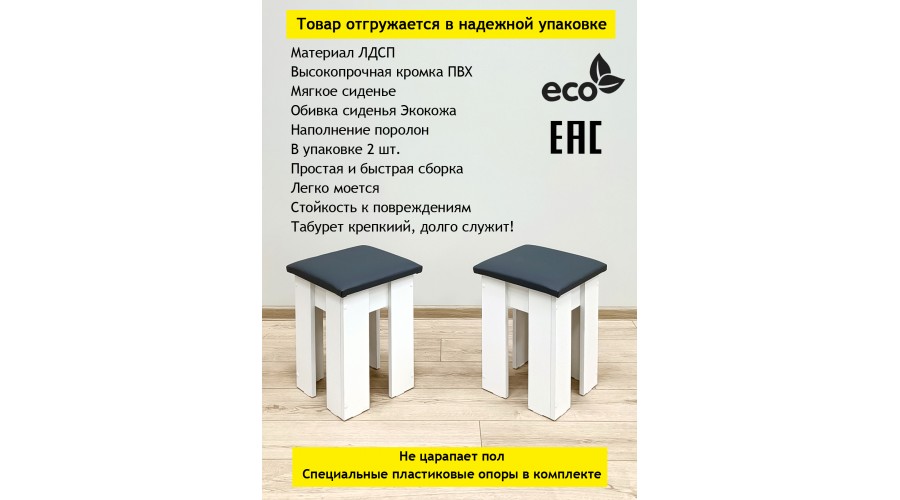 Табурет Family Белый сидушка серая - 2 шт.